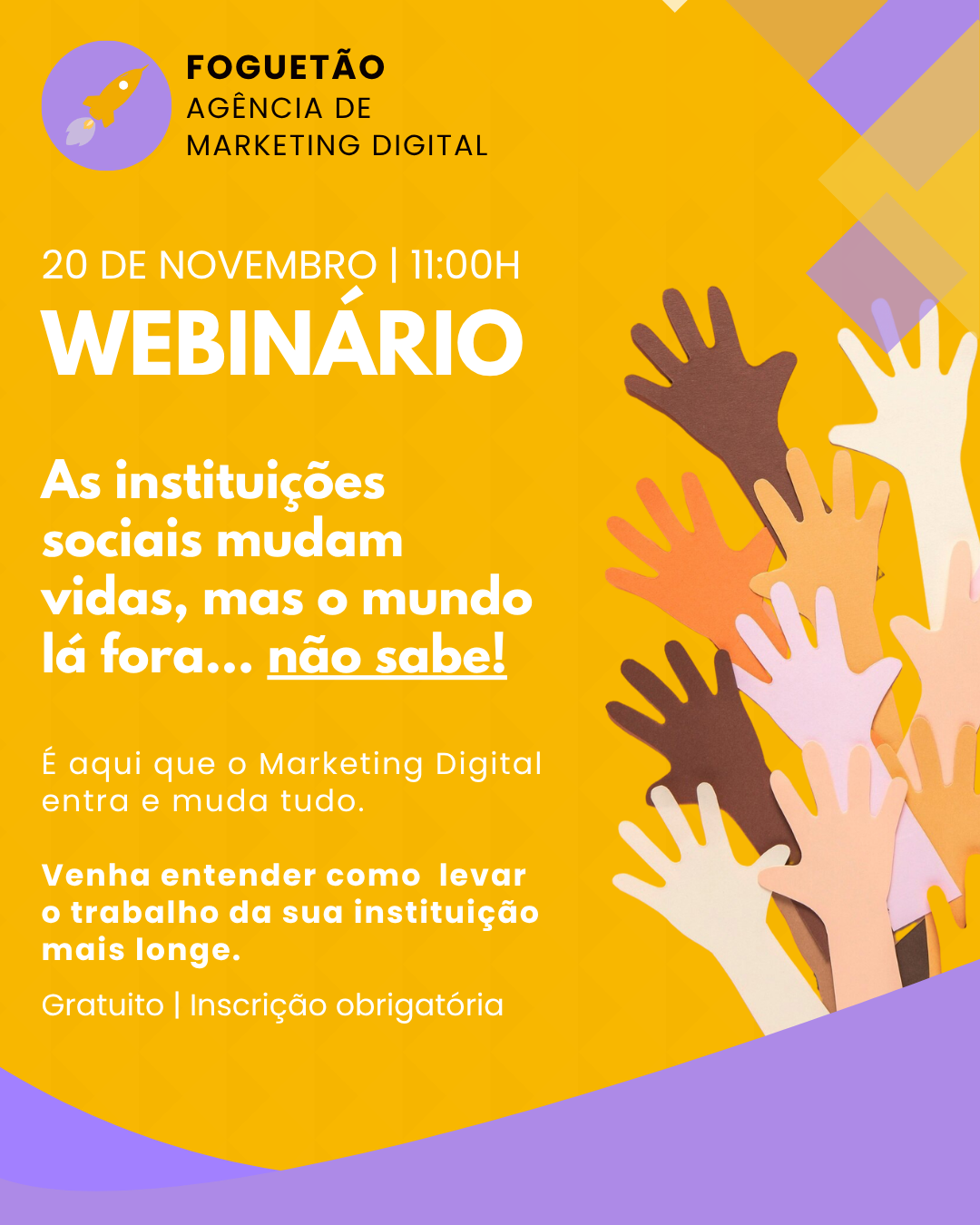 Participe no webinário gratuito e aprenda como o marketing digital e as redes sociais podem amplificar o trabalho das instituições sociais.